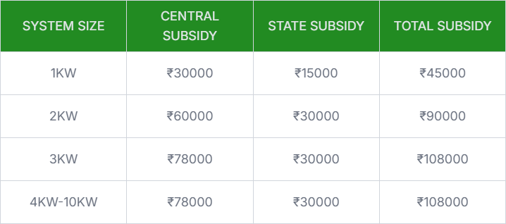 Subsidy on 3KW to 10KW